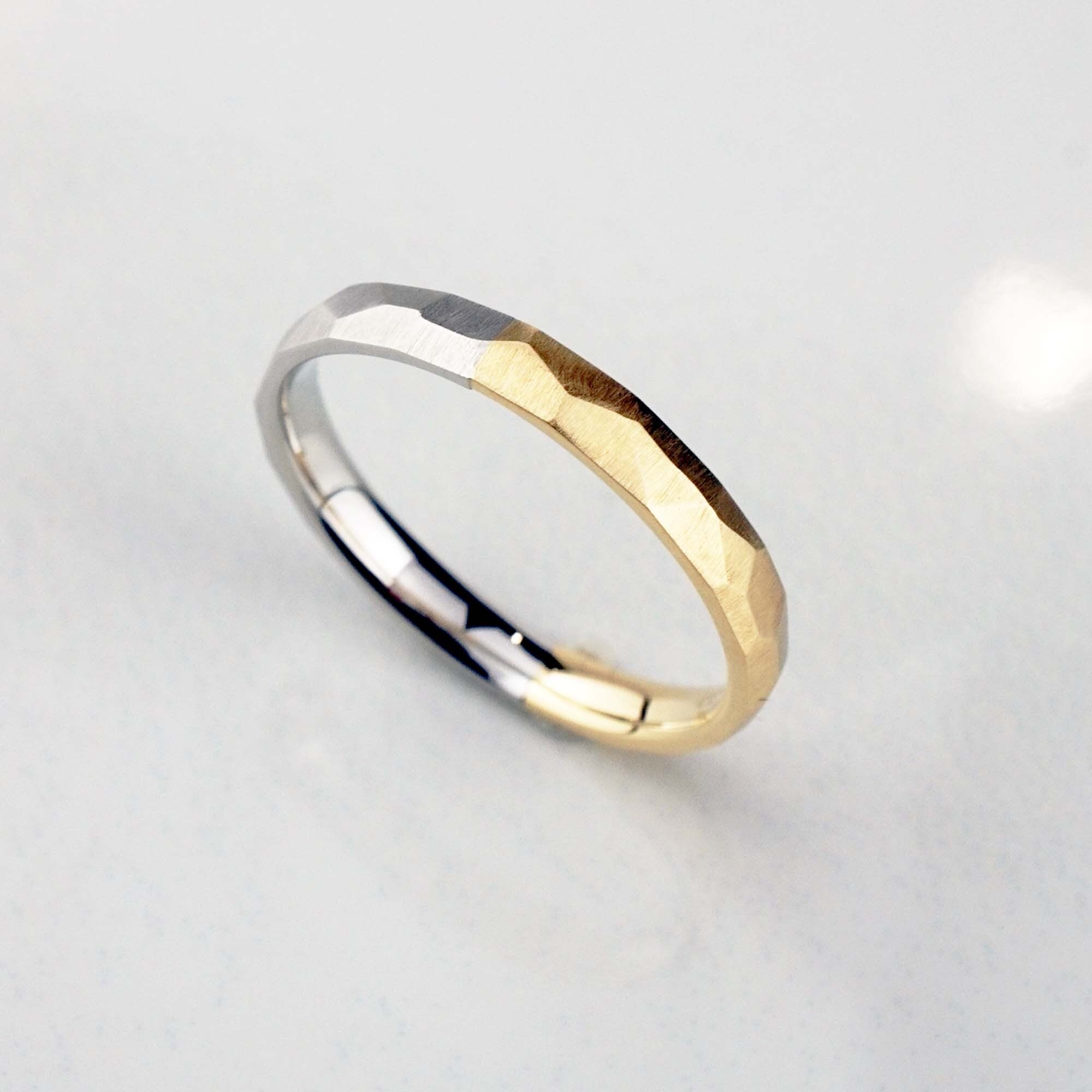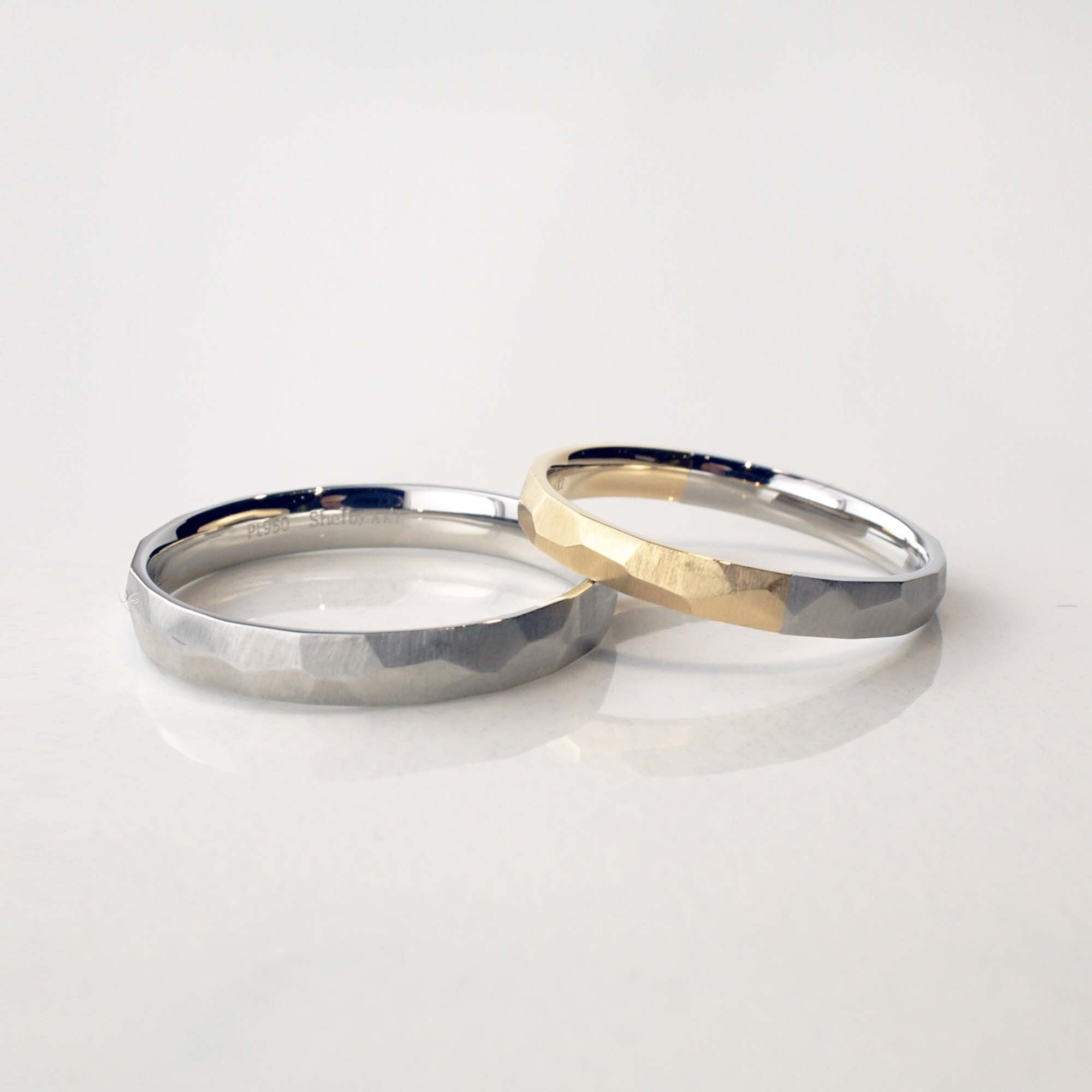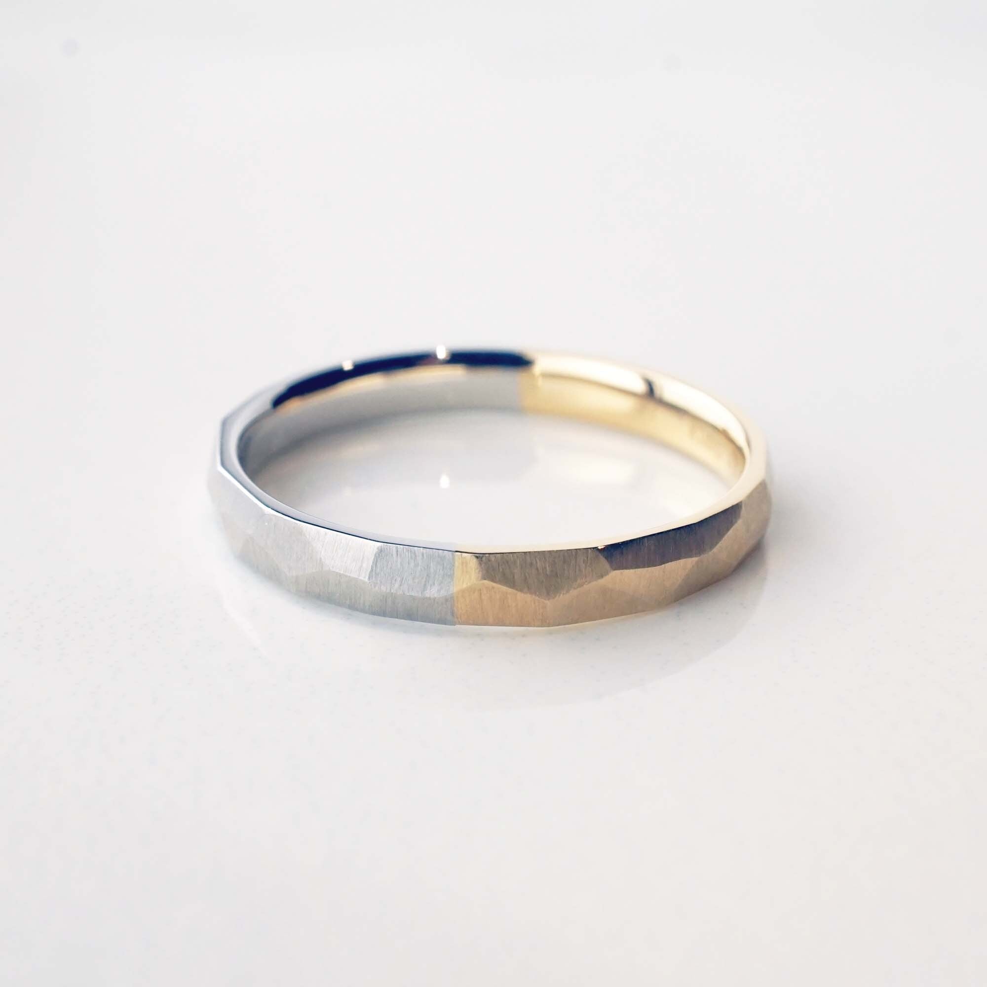 金属を叩き強度を高める“鍛造”製法を用い、職人がひとつひとつ丁寧に削り出して仕上げるリングは、すべてが唯一無二。高い強度を活かして厚みを抑えることで、指に自然と馴染む心地よさを実現しました。
