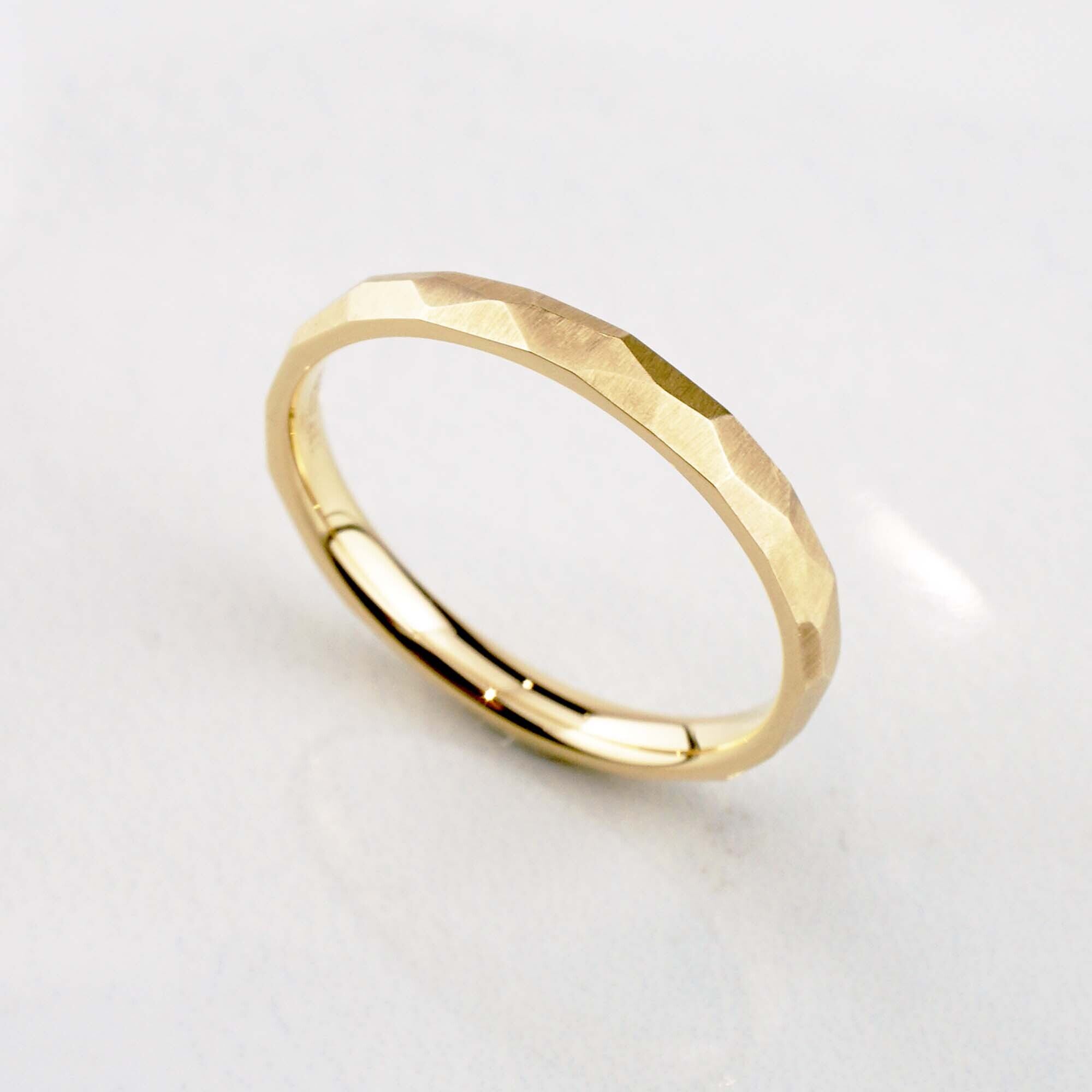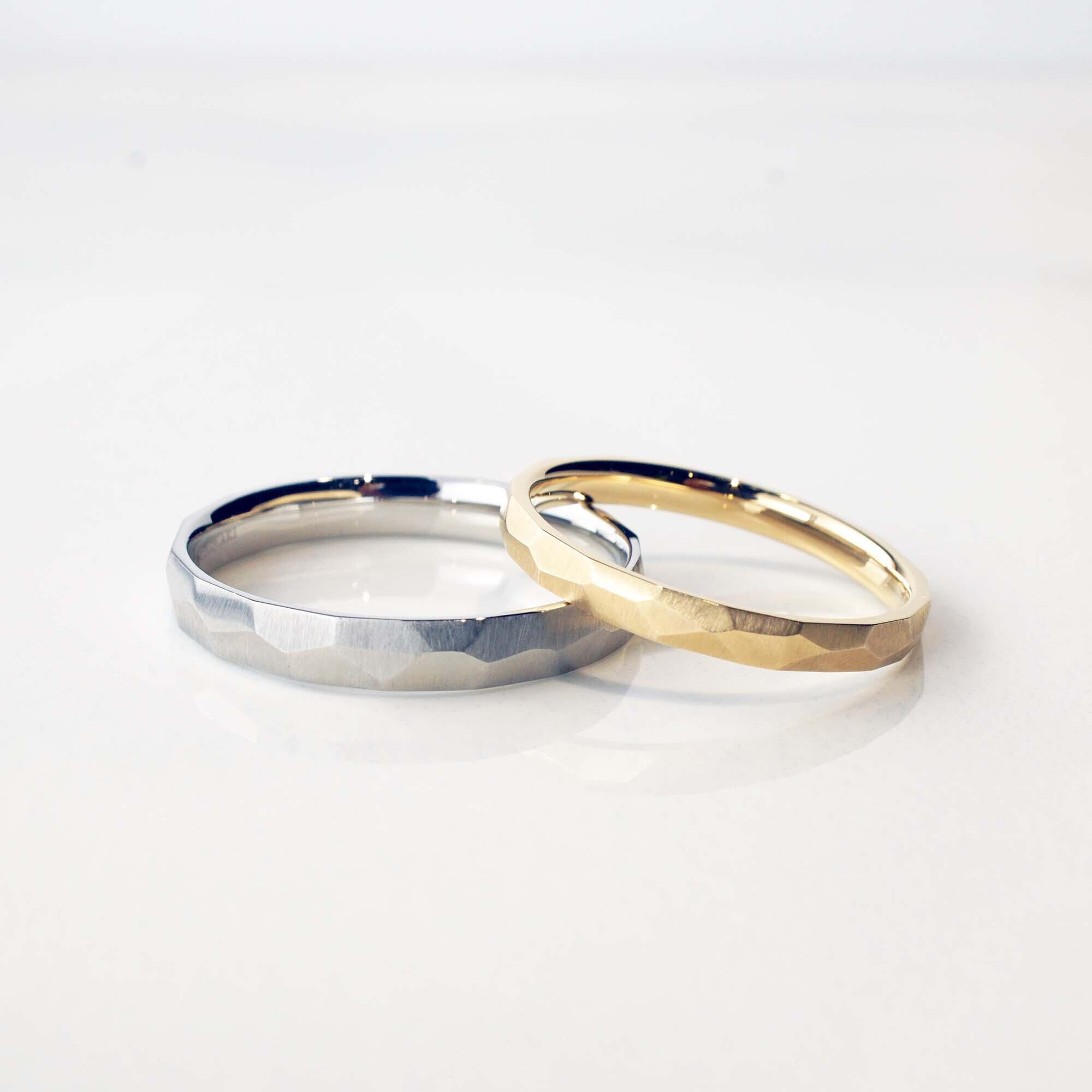 金属を叩き強度を増す“鍛造”の製法を使い、丁寧にひとつずつ削り作られたリングは、同じものがひとつとしてない唯一無二のリング。