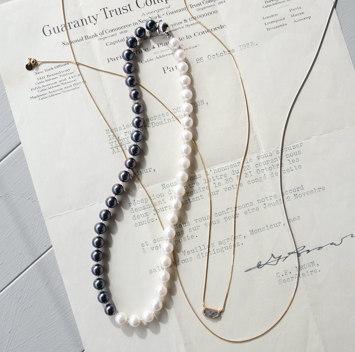 石枠とチェーンの温かみのあるゴールドに包まれ強く優しく輝き、ダイヤモンドの美しさを際立たせます。