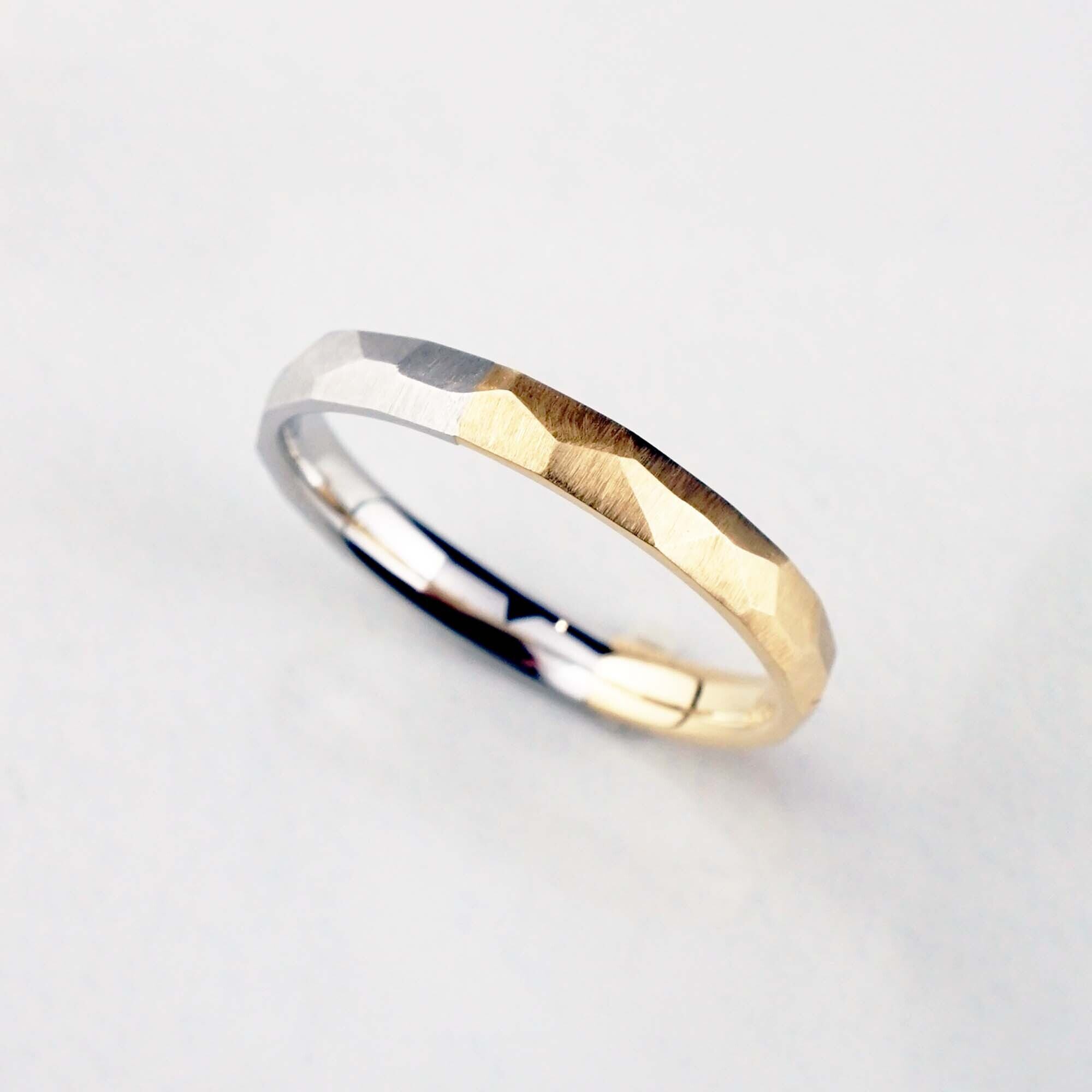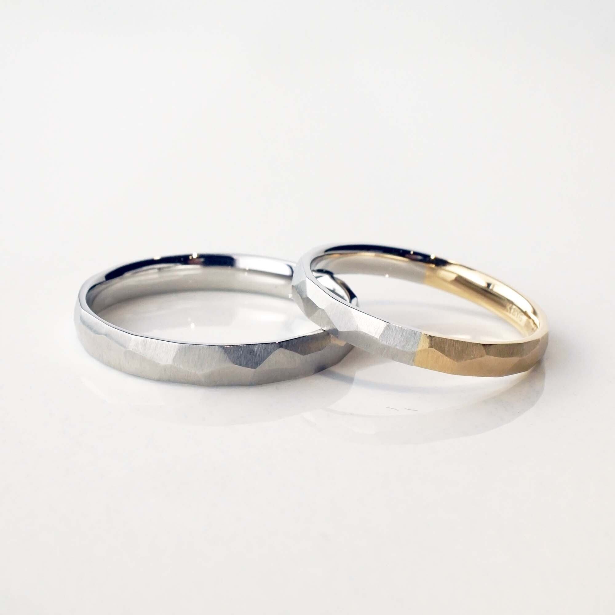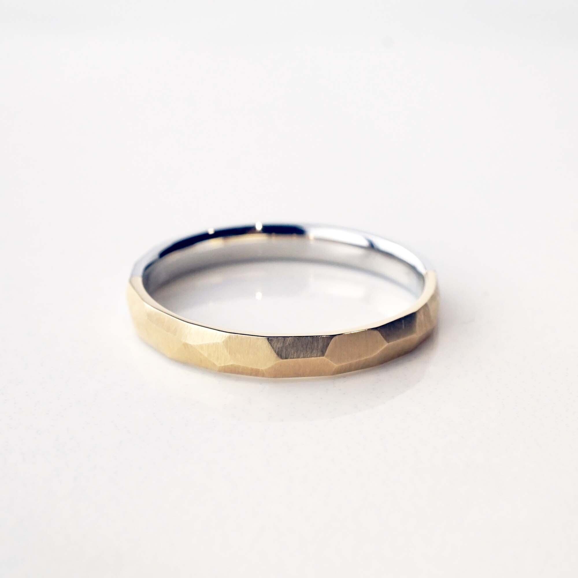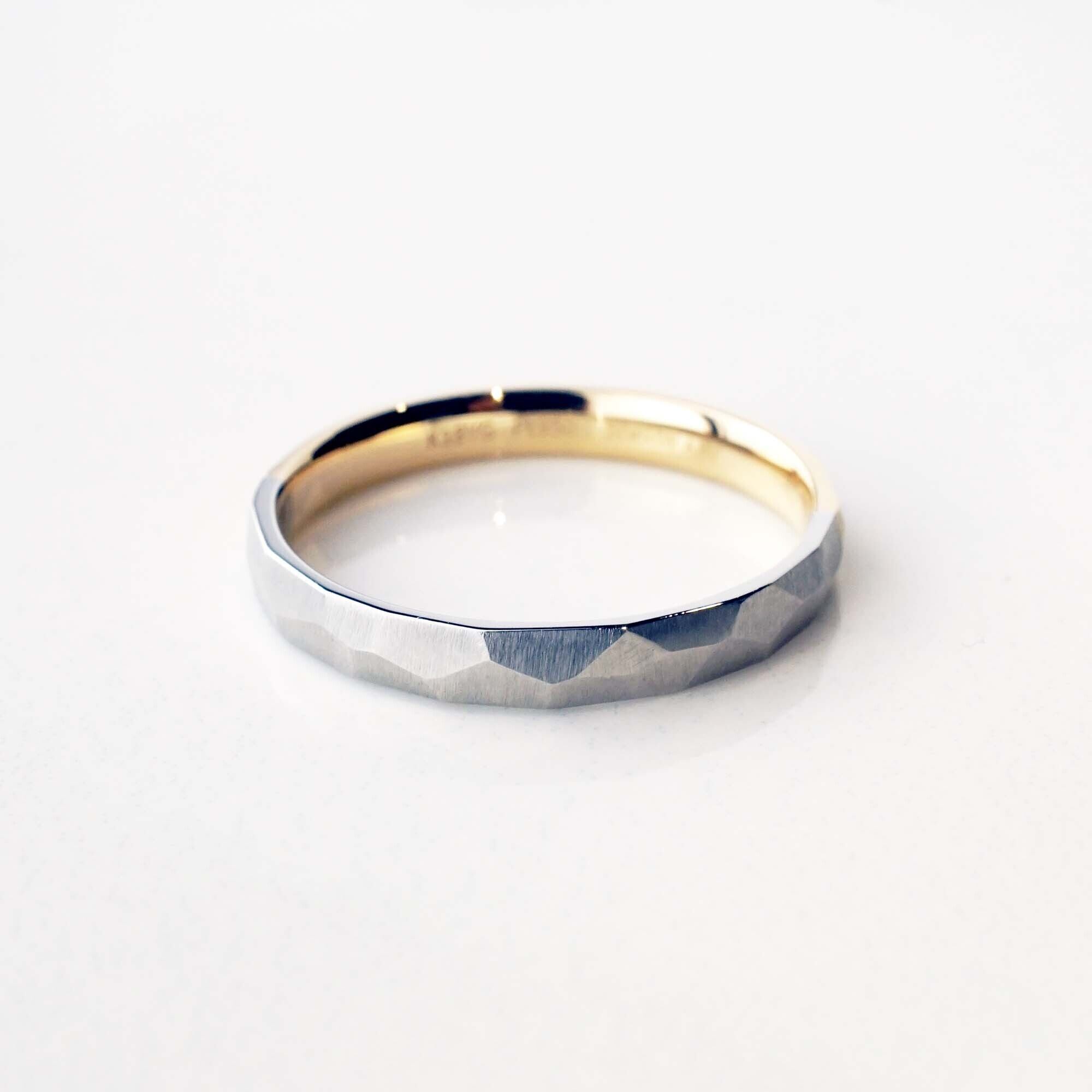 金属を叩き強度を増す“鍛造”の製法を使い、丁寧にひとつずつ削り作られたリングは、同じものがひとつとしてない唯一無二のリング。